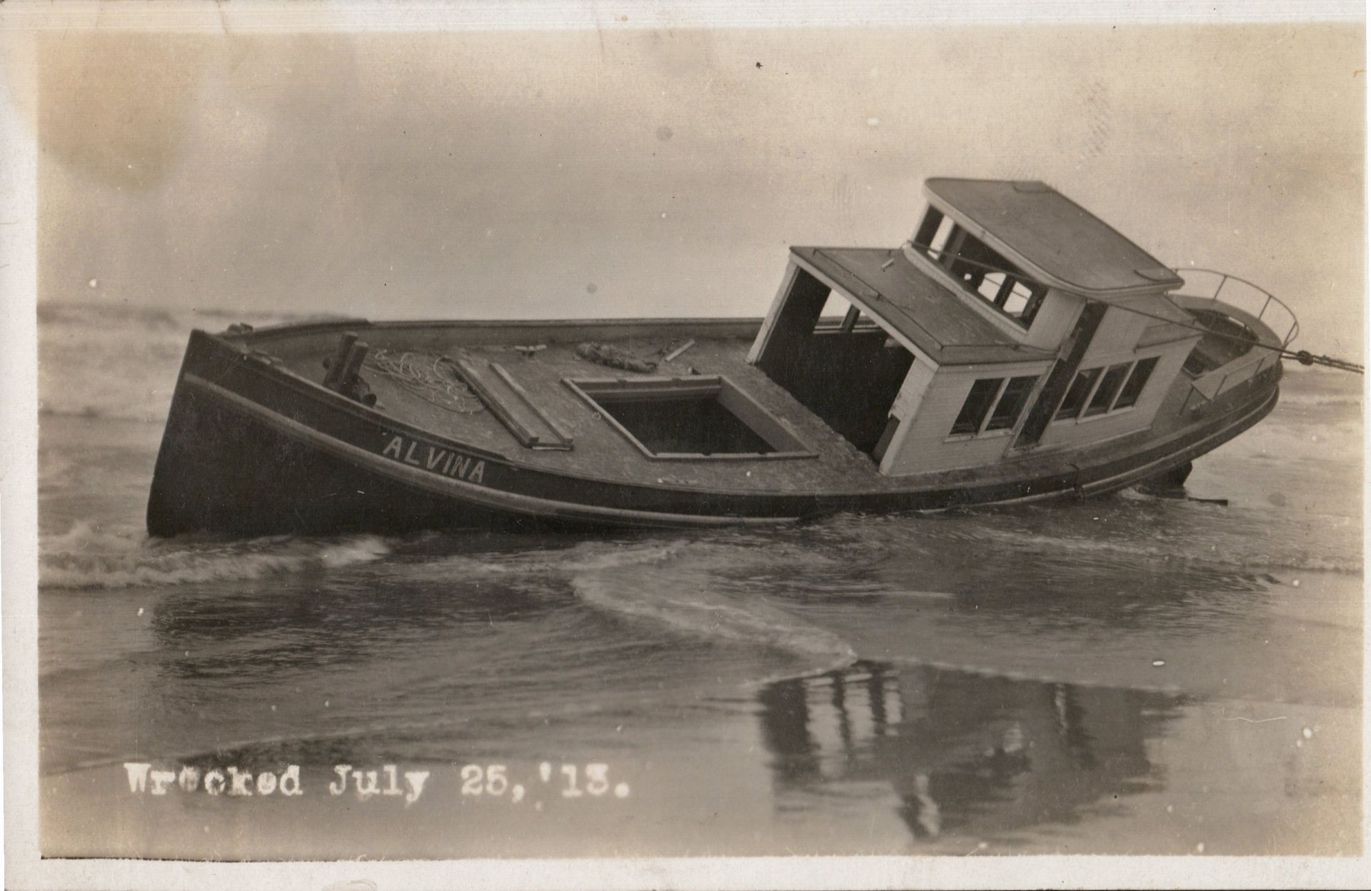 The Captain, his wife and four of the crew, not knowing where they were in the early morning darkness, decided to chance swimming ashore with a rope tied to the wreckage should they not make land, only to find jumping overboard that their feet touched the ground and they could walk ashore.